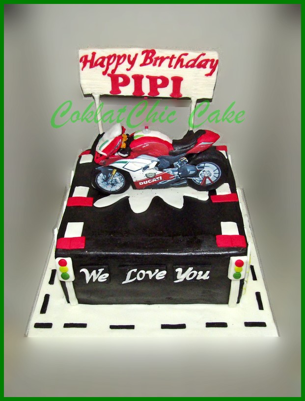 Birthday Cake dengan tema Motor Ducati, model tersebut mulai ukuran 20 cm , daftar harga kue ulang tahun https://coklatchiccake.com/daftar-harga-2