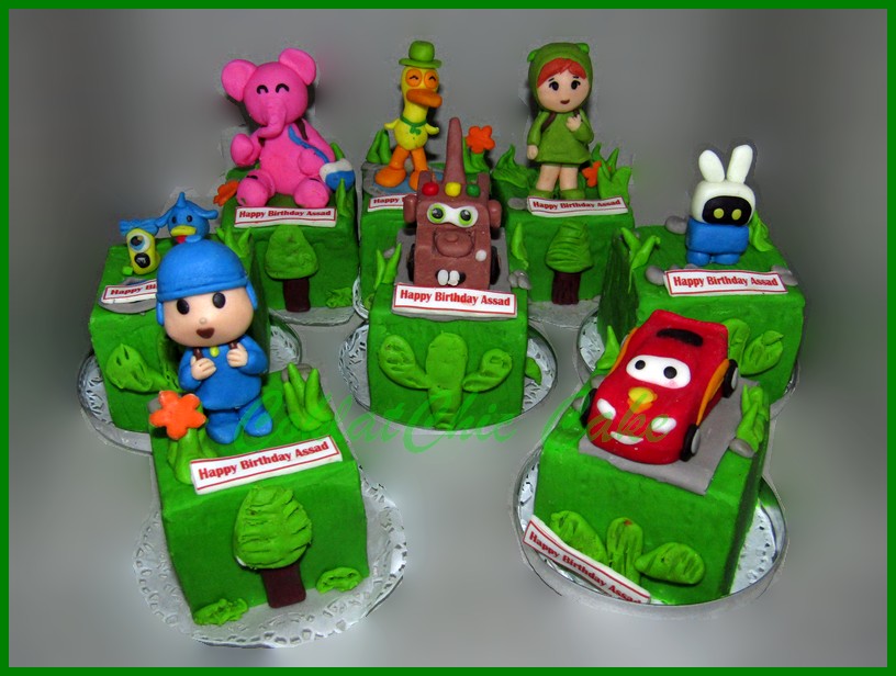Birthday Minicake dengan tema Pocoyo dan Disney Cars model tersebut mulai ukuran 6 cm , daftar harga kue ulang tahun https://coklatchiccake.com/daftar-harga-2