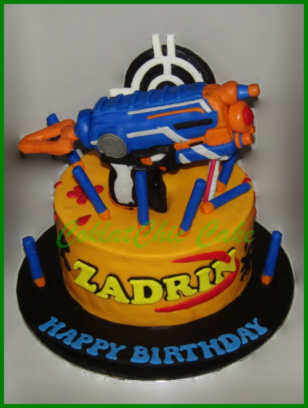 Birthday Cake dengan tema Nerf Gun , model tersebut mulai ukuran 18 cm , daftar harga kue ulang tahun https://coklatchiccake.com/daftar-harga-2