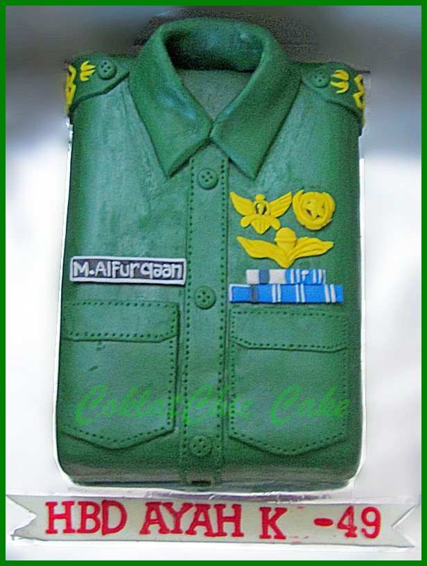 Birthday Cake dengan tema Baju Tentara , model tersebut mulai ukuran 15 cm , daftar harga kue ulang tahun https://coklatchiccake.com/daftar-harga-2