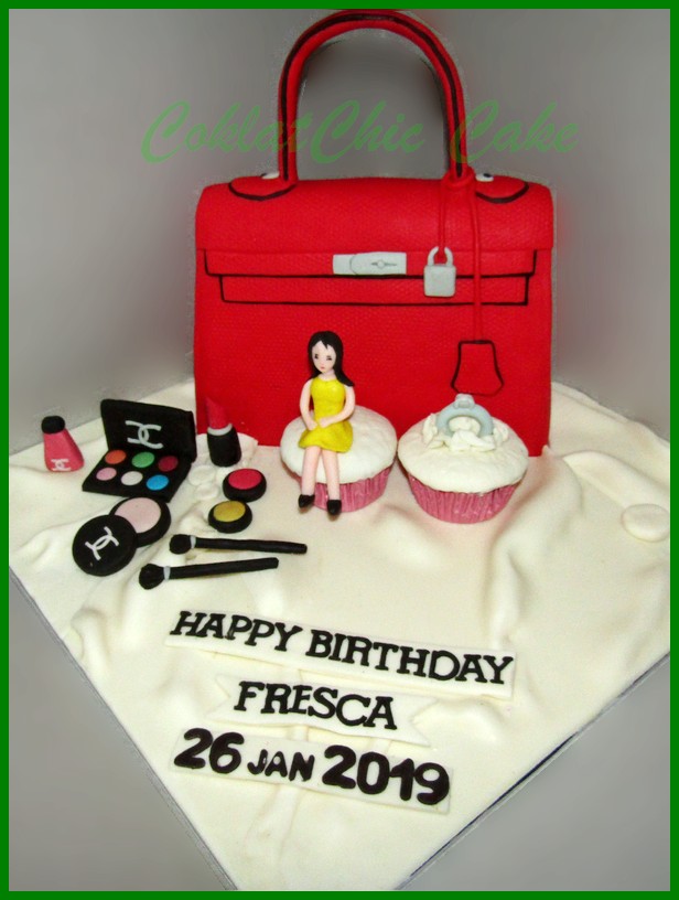 Birthday Cake dengan tema Tas dan Kosmetik , model tersebut mulai ukuran 22 cm , daftar harga kue ulang tahun https://coklatchiccake.com/daftar-harga-2