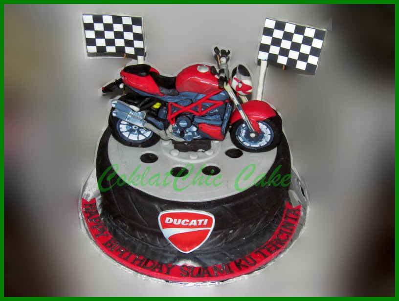 Birthday Cake dengan tema motor Ducati , model tersebut mulai ukuran 24 cm , daftar harga kue ulang tahun https://coklatchiccake.com/daftar-harga-2