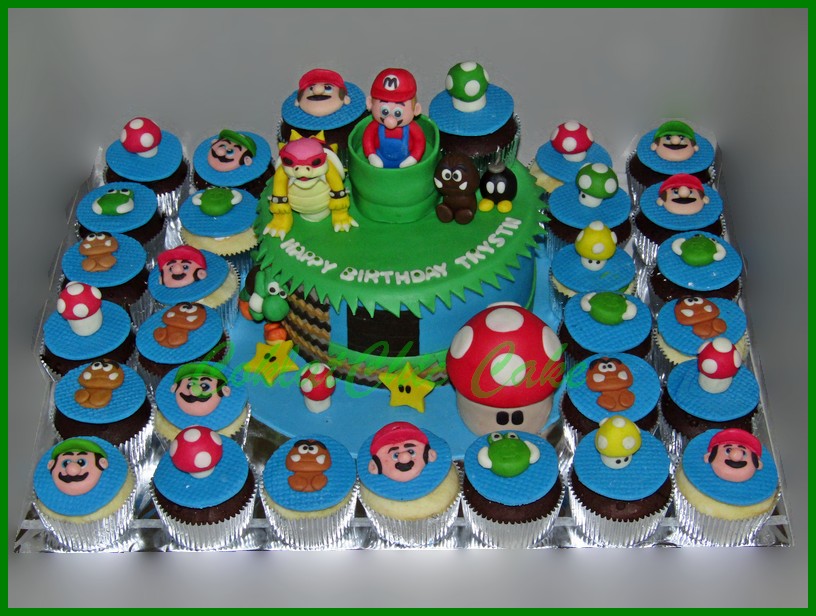 Birthday Cake dan Cupcake dengan tema Mario Bros , model tersebut mulai ukuran 18 cm , daftar harga kue ulang tahun https://coklatchiccake.com/daftar-harga-2