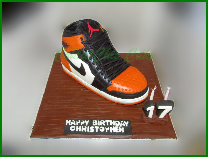 Birthday Cake dengan tema sepatu Nike Air Jordan, model tersebut mulai ukuran 20 cm , daftar harga kue ulang tahun https://coklatchiccake.com/daftar-harga-2