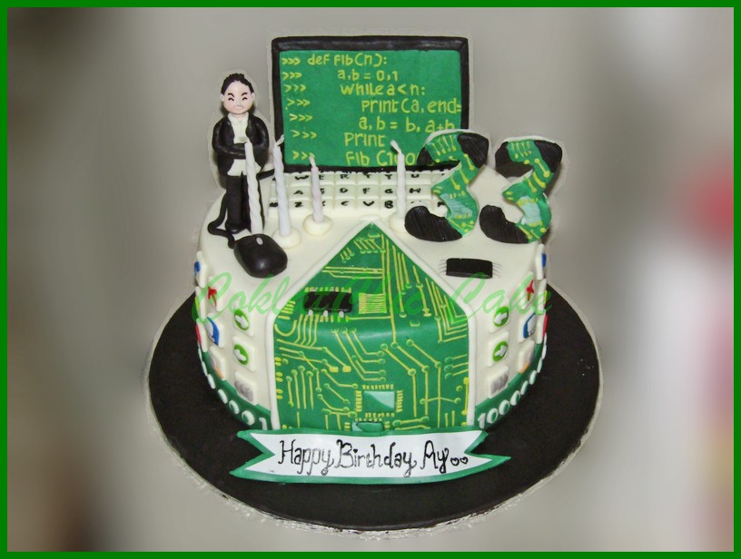 Birthday Cake dengan tema IT Computer , model tersebut mulai ukuran 22 cm , daftar harga kue ulang tahun https://coklatchiccake.com/daftar-harga-2