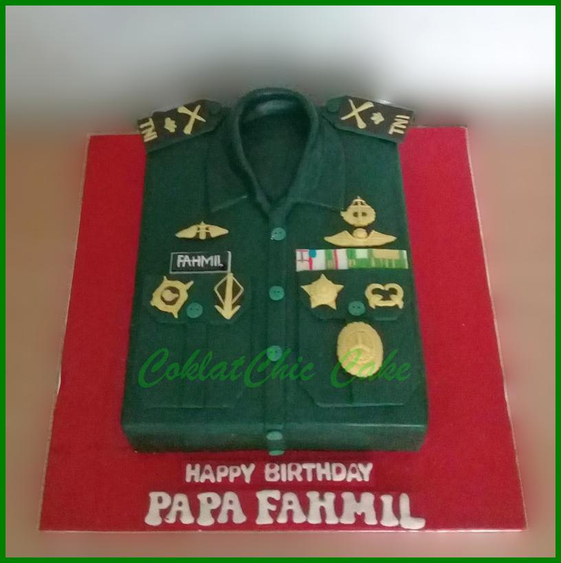 Birthday Cake dengan tema baju tentara , model tersebut mulai ukuran 20 cm , daftar harga kue ulang tahun https://coklatchiccake.com/daftar-harga-2