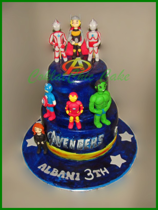 Birthday Cake dengan tema The Avengers dan Ultraman, model tersebut mulai ukuran 18 cm dan 12 cm, daftar harga kue ulang tahun https://coklatchiccake.com/daftar-harga-2