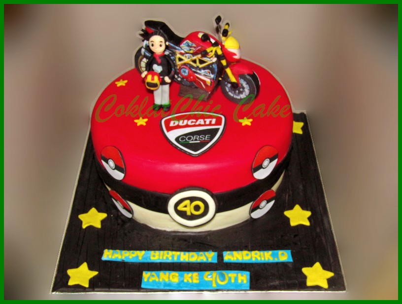 Birthday Cake dengan tema motor Ducati Ironman, model tersebut mulai ukuran 22 cm , daftar harga kue ulang tahun https://coklatchiccake.com/daftar-harga-2