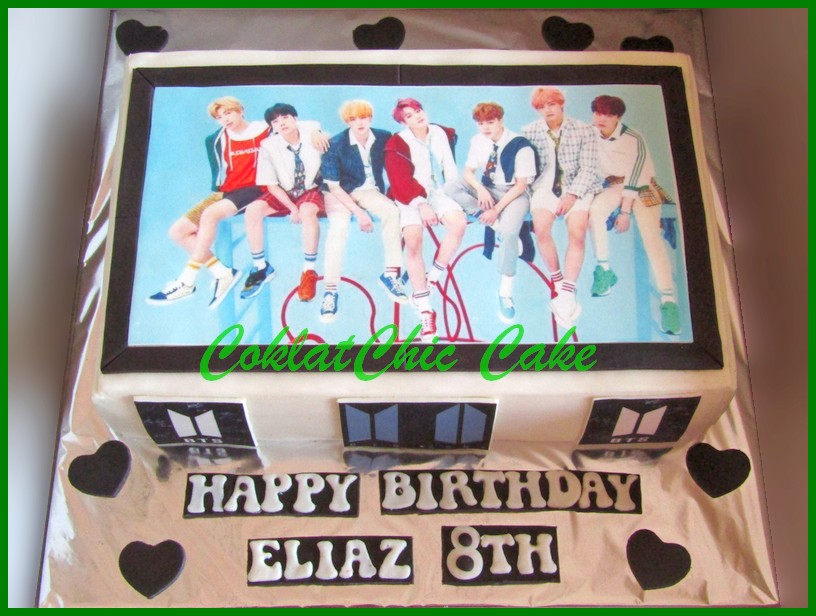 Birthday Cake dengan tema boyband korea BTS, model tersebut mulai ukuran 20×30 cm , daftar harga kue ulang tahun https://coklatchiccake.com/daftar-harga-2