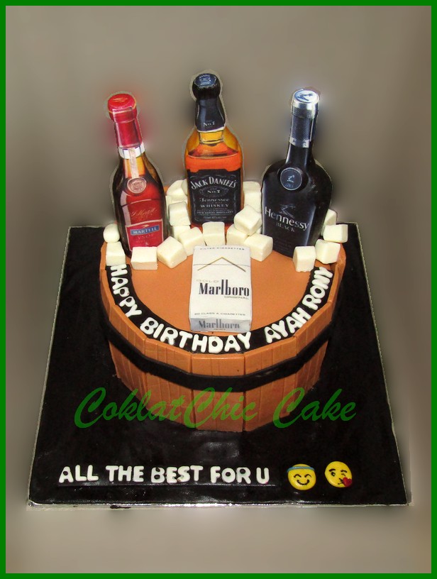 Birthday Cake dengan tema Wine and cigarette, model tersebut mulai ukuran 15 cm , daftar harga kue ulang tahun https://coklatchiccake.com/daftar-harga-2