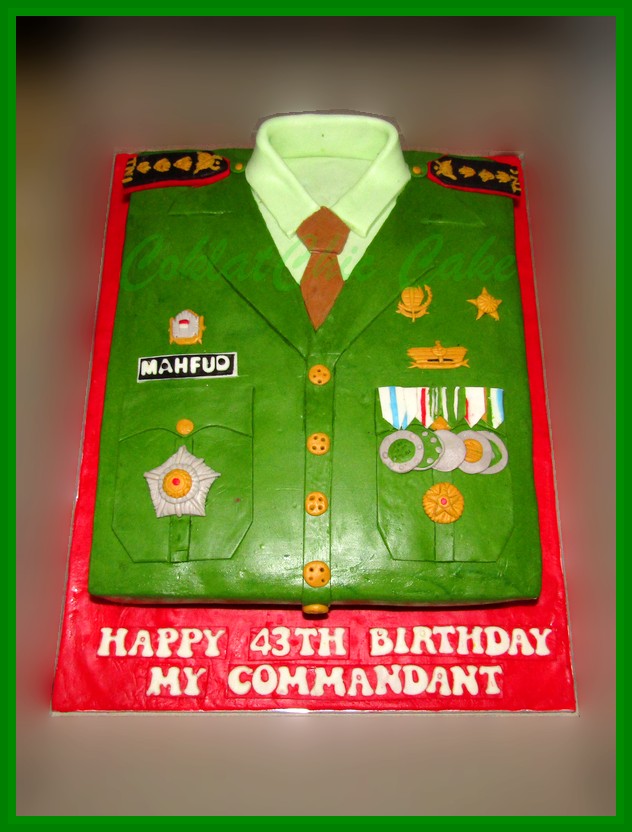 Birthday Cake dengan tema Baju Tentara, model tersebut mulai ukuran 30 cm , daftar harga kue ulang tahun https://coklatchiccake.com/daftar-harga-2