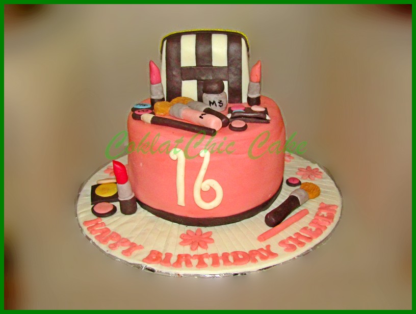 Birthday Cake dengan tema Make-up cosmetic, model tersebut mulai ukuran 18 cm , daftar harga kue ulang tahun https://coklatchiccake.com/daftar-harga-2