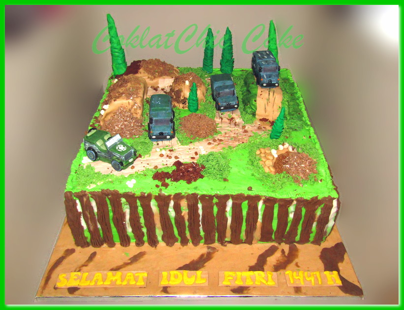 Cake dengan tema mobil tentara, model tersebut mulai ukuran 30 cm , daftar harga kue ulang tahun https://coklatchiccake.com/daftar-harga-2