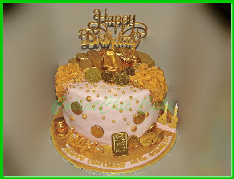 Birthday Cake pulling money dengan tema gold coin and plate, model tersebut mulai ukuran 18 cm , daftar harga kue ulang tahun https://coklatchiccake.com/daftar-harga-2