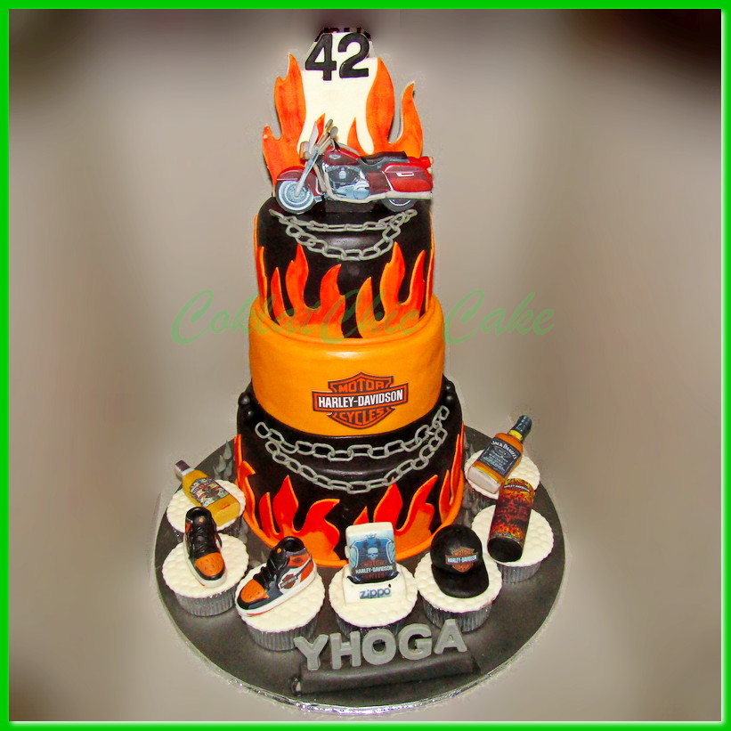 Birthday Cake dan cupcake dengan tema Harley Davidson, model tersebut mulai ukuran 18 cm, 15 cm dan 12 cm, daftar harga kue ulang tahun https://coklatchiccake.com/daftar-harga-2
