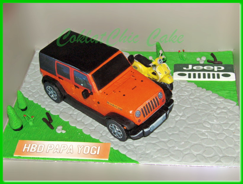 Birthday Cake dengan tema mobil Jeep Rubicon dan Vespa, model tersebut mulai ukuran 24 cm, daftar harga kue ulang tahun https://coklatchiccake.com/daftar-harga-2
