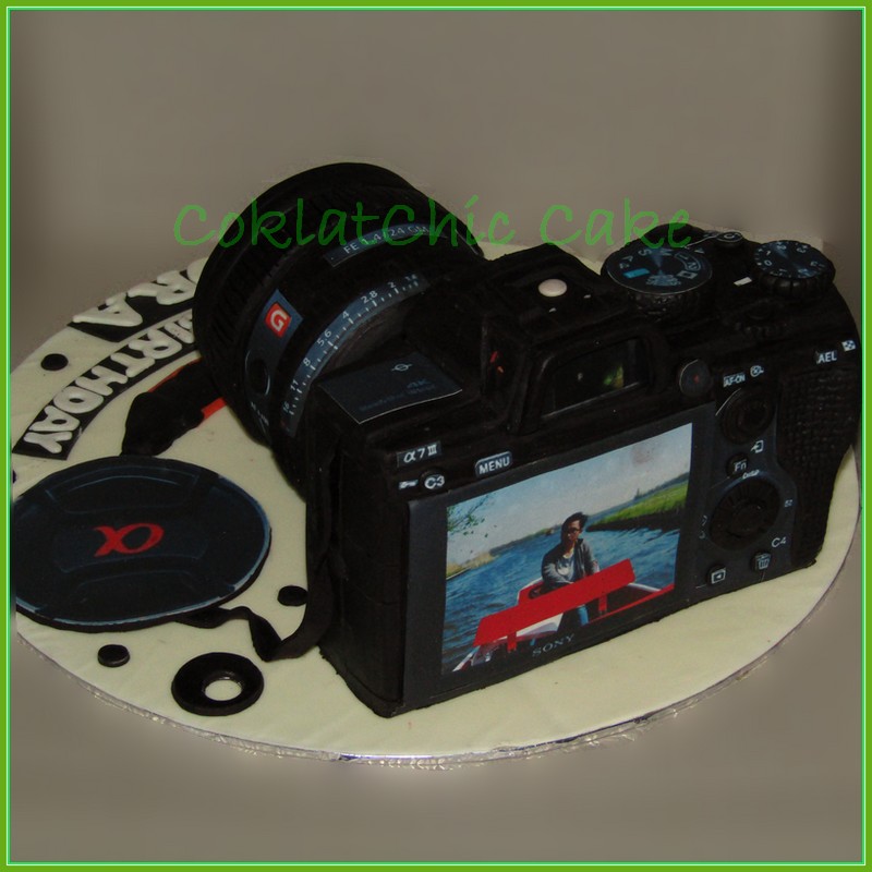 Birthday Cake dengan tema kamera Sony Alpha 7, model tersebut ukuran Real Size, daftar harga kue ulang tahun https://coklatchiccake.com/daftar-harga-2