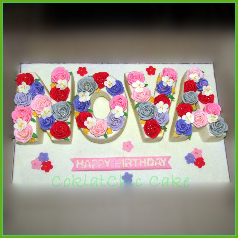 Birthday Cake huruf dengan tema bunga, model tersebut mulai ukuran 2 cake 15 cm, daftar harga kue ulang tahun https://coklatchiccake.com/daftar-harga-2