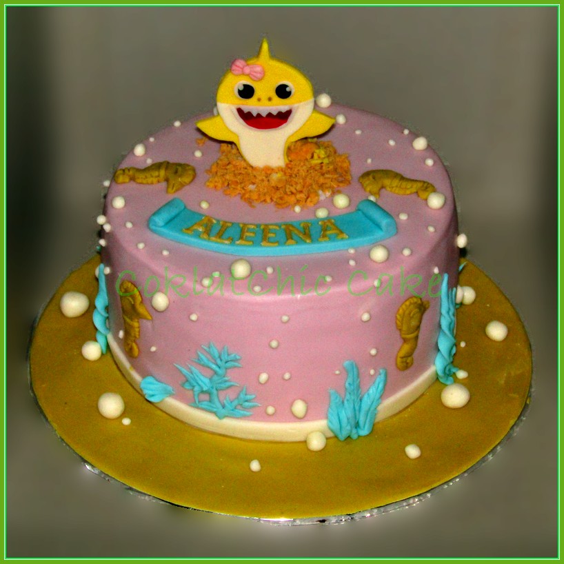 Birthday Cake dengan tema Baby Shark, model tersebut mulai ukuran 18 cm, daftar harga kue ulang tahun https://coklatchiccake.com/daftar-harga-2