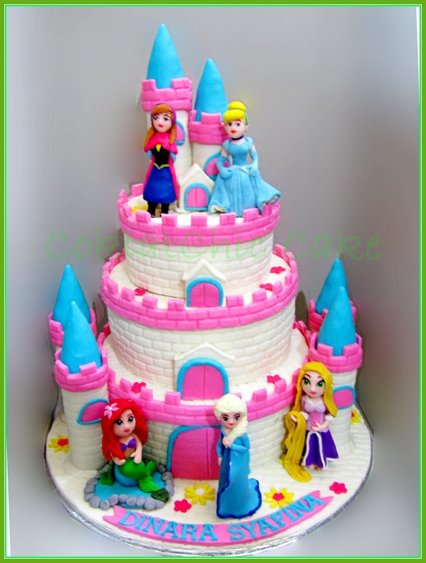 Birthday Cake dengan tema Disney Princes Castle , model ini mulai ukuran 18 cm, 15 cm dan 12 cm, daftar harga kue ulang tahun https://coklatchiccake.com/daftar-harga-2