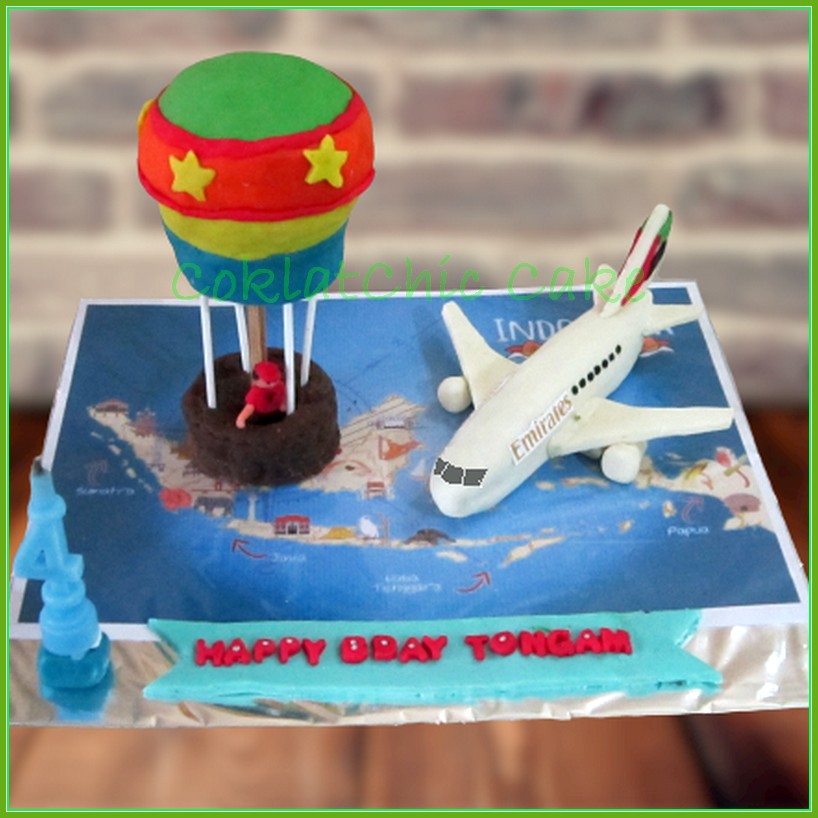 Birthday Cake dengan tema travel, balon udara dan airlines, model ini mulai ukuran 15 cm, daftar harga kue ulang tahun https://coklatchiccake.com/daftar-harga-2