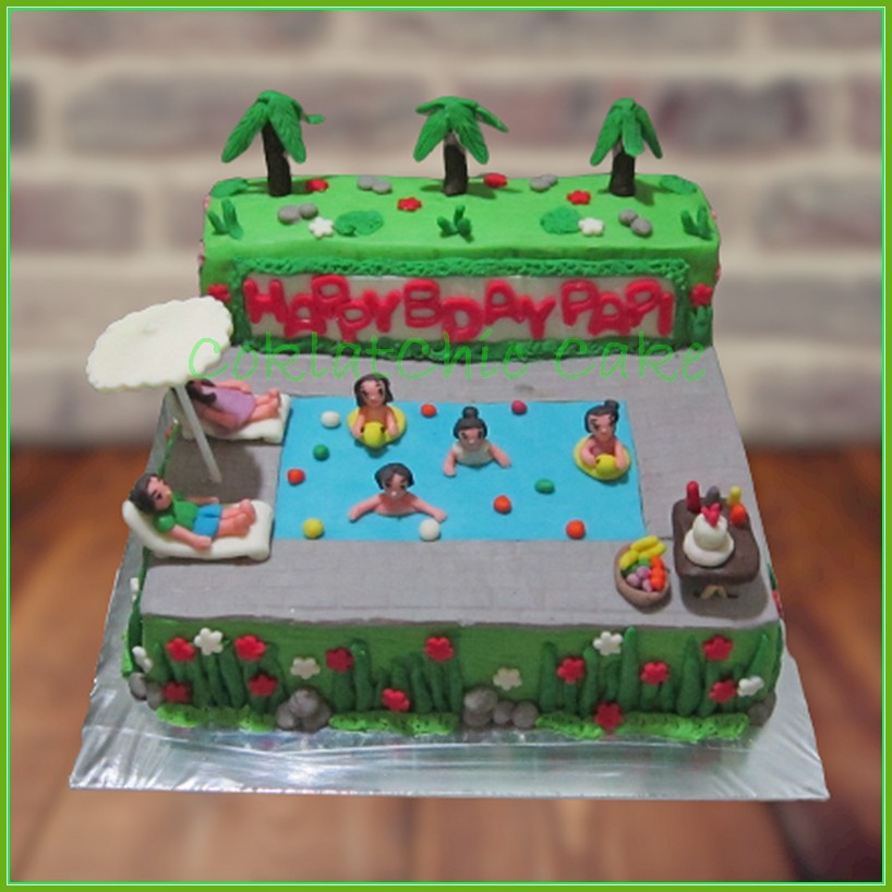 Birthday Cake dengan tema swimming pool party, model ini mulai ukuran 20 cm, daftar harga kue ulang tahun https://coklatchiccake.com/daftar-harga-2