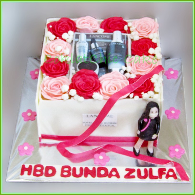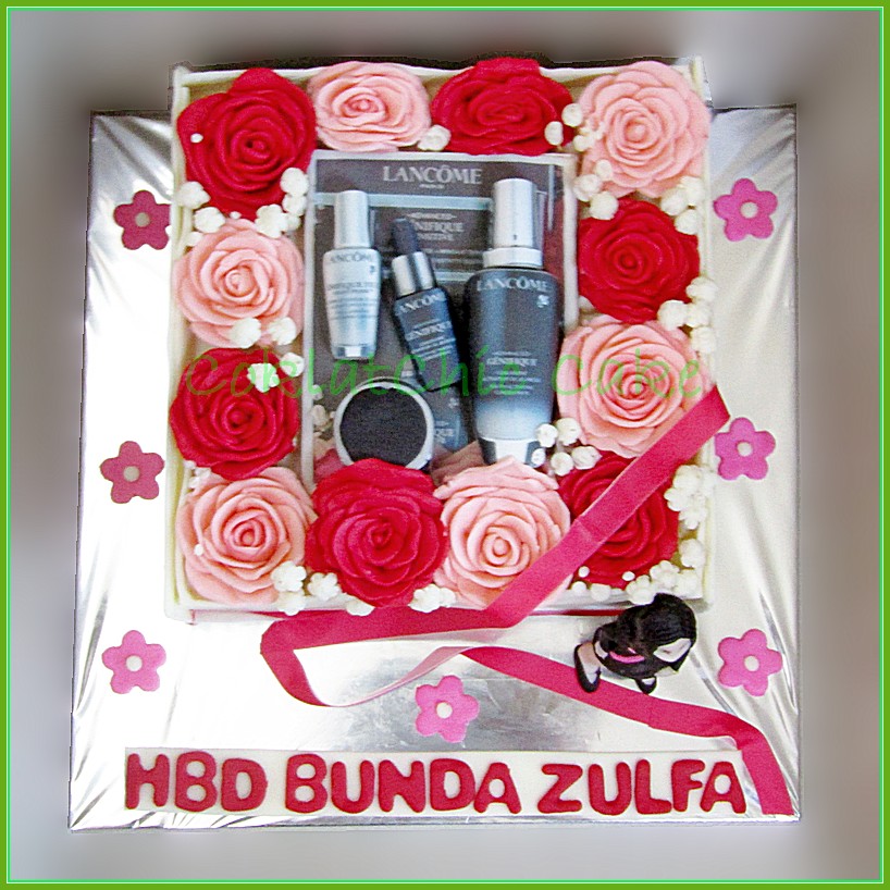 Birthday Cake dengan tema kosmetik dan bunga, model ini mulai ukuran 18 cm, daftar harga kue ulang tahun https://coklatchiccake.com/daftar-harga-2