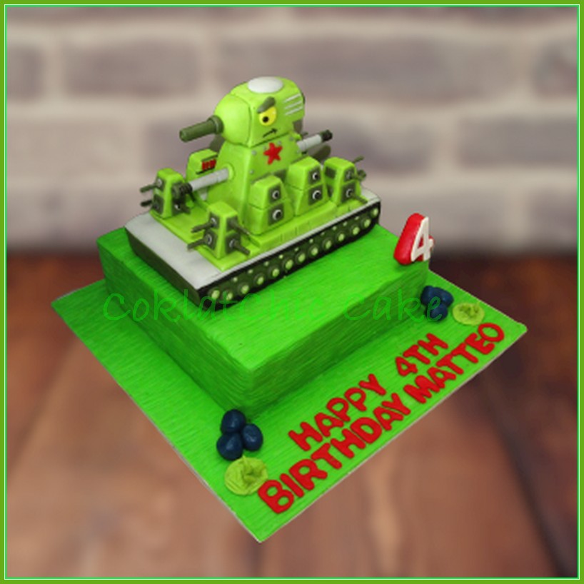 Birthday Cake dengan tema Cartoon Tank, model ini mulai ukuran 15 cm, daftar harga kue ulang tahun https://coklatchiccake.com/daftar-harga-2