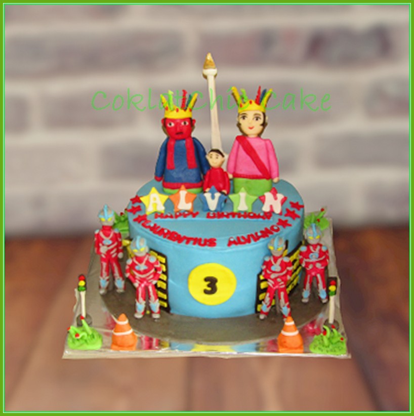 Birthday Cake dengan tema Ondel-ondel di Monas dan Ultraman, model ini mulai ukuran 18 cm, daftar harga kue ulang tahun https://coklatchiccake.com/daftar-harga-2