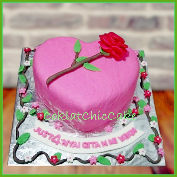 Valentine Cake flowers , cake bentuk hati dan sekuntum bunga mawar, model ini mulai dari ukuran 15cm, daftar harga kue ulang tahun https://coklatchiccake.com/daftar-harga-2