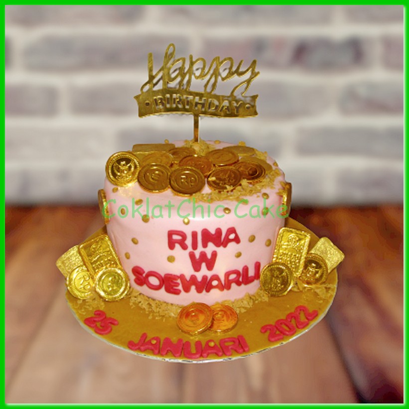 Birthday Cake pulling money dengan tema gold, model tersebut mulai ukuran 15 cm , daftar harga kue ulang tahun https://coklatchiccake.com/daftar-harga-2
