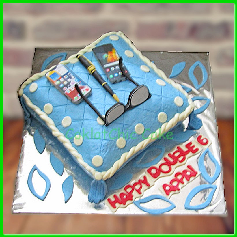 Birthday Cake dengan tema bantal gadget, model tersebut mulai ukuran 18 cm , daftar harga kue ulang tahun https://coklatchiccake.com/daftar-harga-2