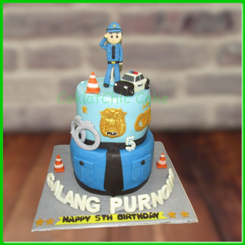 Birthday Cake dengan tema Polisi, model tersebut mulai ukuran 15 cm dan 12 cm , daftar harga kue ulang tahun https://coklatchiccake.com/daftar-harga-2