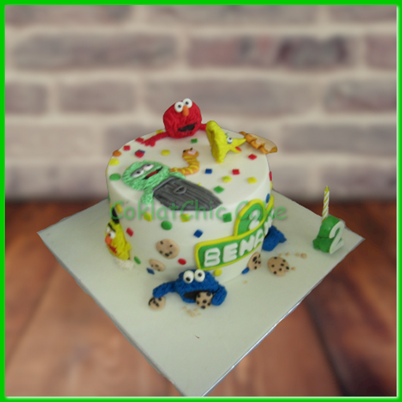 Birthday Cake dengan tema Sesame Street, model tersebut mulai ukuran 15 cm , daftar harga kue ulang tahun https://coklatchiccake.com/daftar-harga-2