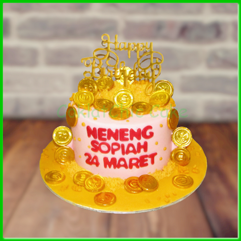 Birthday Cake pulling money dengan tema gold, model tersebut mulai ukuran 15 cm , daftar harga kue ulang tahun https://coklatchiccake.com/daftar-harga-2