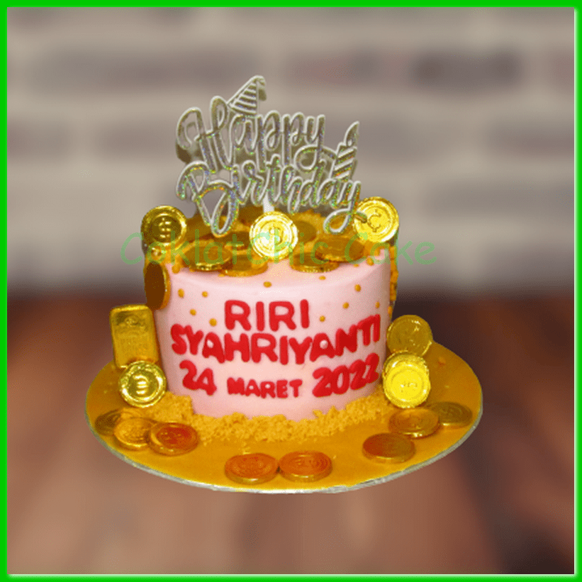 Birthday Cake pulling money dengan tema gold, model tersebut mulai ukuran 15 cm , daftar harga kue ulang tahun https://coklatchiccake.com/daftar-harga-2