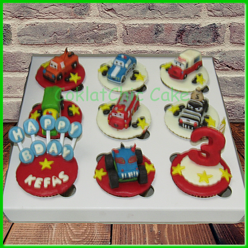 Birthday Cupcake set dengan tema Robocar, model tersebut mulai ukuran 15 cm , daftar harga kue ulang tahun https://coklatchiccake.com/daftar-harga-2