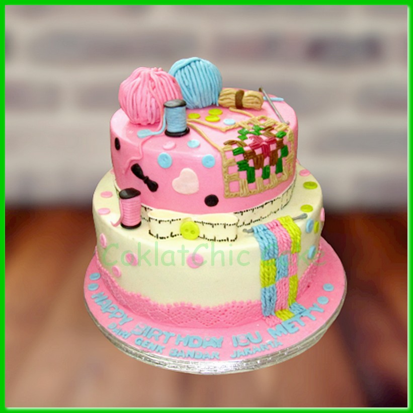 Birthday Cake dengan tema Merajut, model tersebut mulai ukuran 24 cm dan 20 cm , daftar harga kue ulang tahun https://coklatchiccake.com/daftar-harga-2