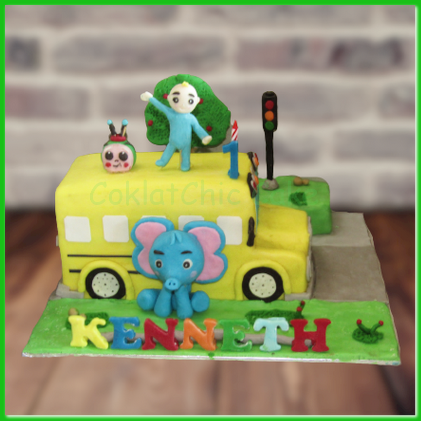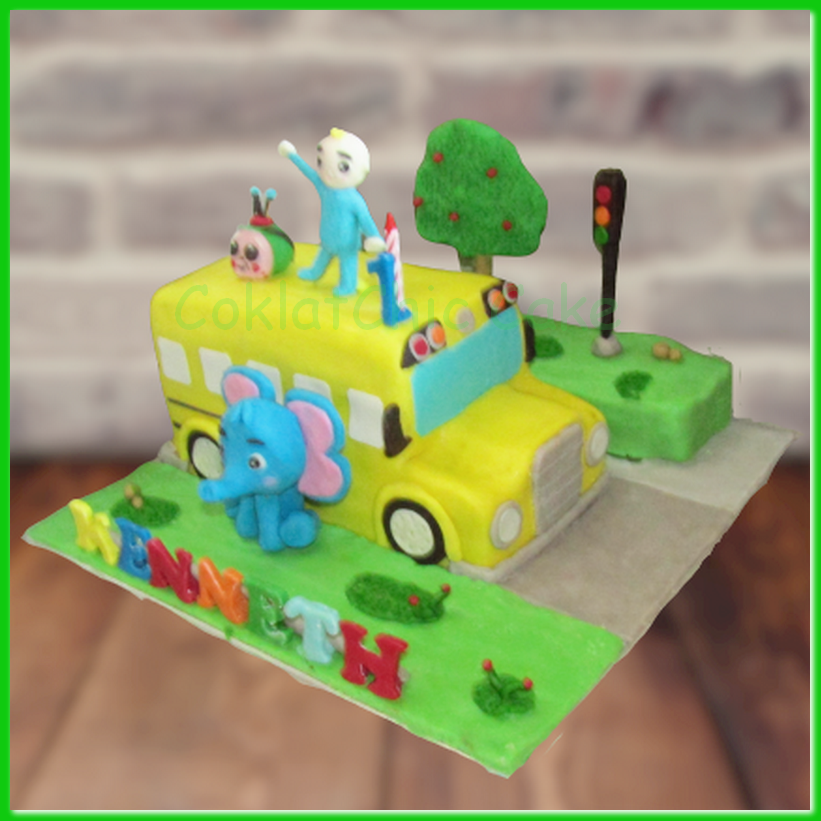 Birthday Cake dengan temaBus Cocomelon, model tersebut mulai ukuran 20 cm , daftar harga kue ulang tahun https://coklatchiccake.com/daftar-harga-2