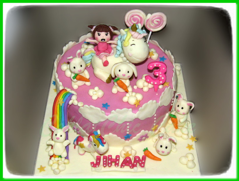 Birthday Cake dengan tema Unicorn & Rabbit, model tersebut mulai ukuran 22 cm , daftar harga kue ulang tahun https://coklatchiccake.com/daftar-harga-