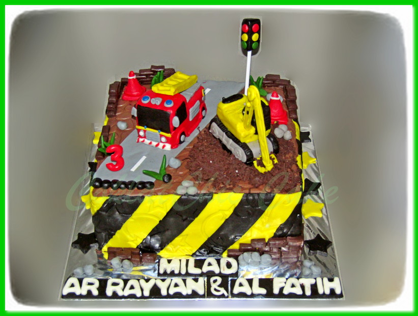 Birthday Cake dengan tema firetruck and Excavator, model tersebut mulai ukuran 20 cm , daftar harga kue ulang tahun https://coklatchiccake.com/daftar-harga-2