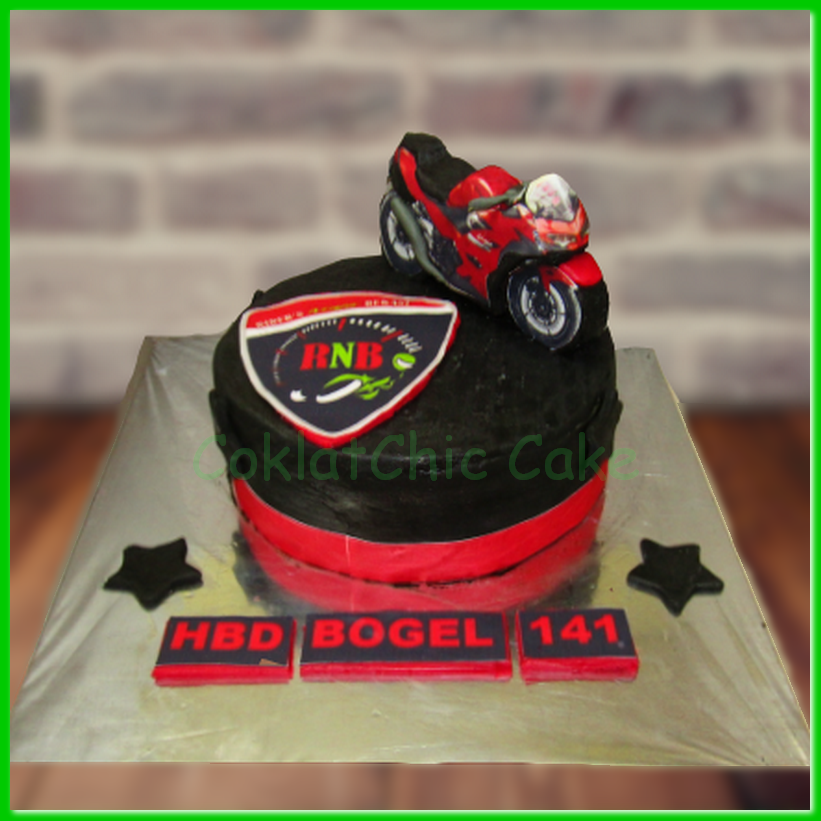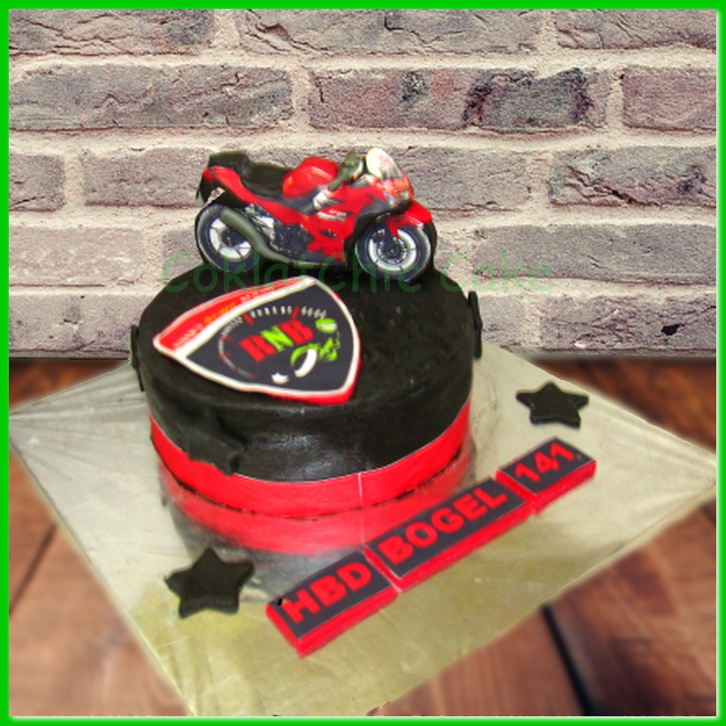 Birthday Cake dengan tema Logo dan Motor Kawasaki Ninja, model tersebut mulai ukuran 15 cm , daftar harga kue ulang tahun https://coklatchiccake.com/daftar-harga-2