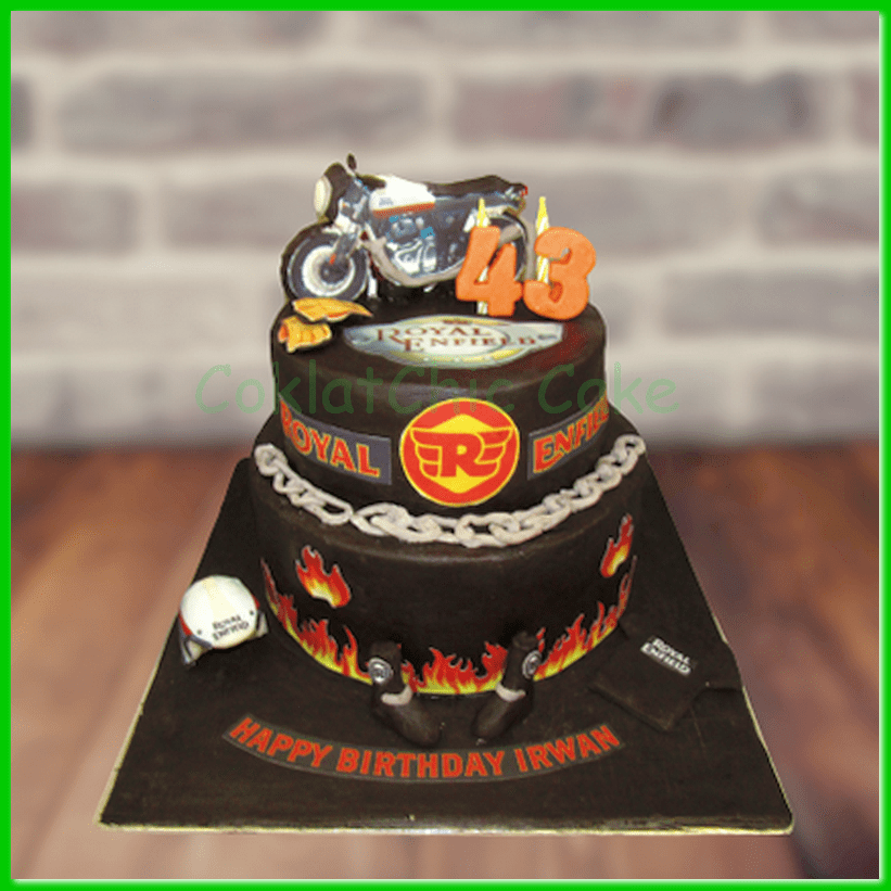 Birthday Cake dengan tema motor Royal Enfield, model tersebut mulai ukuran 20 cm dan 15 cm , daftar harga kue ulang tahun https://coklatchiccake.com/daftar-harga-2