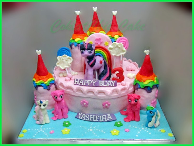 Birthday Cake dengan tema My Little Pony Castle, model tersebut mulai ukuran 30 cm , daftar harga kue ulang tahun https://coklatchiccake.com/daftar-harga-2