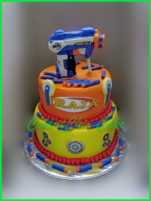 Birthday Cake dengan tema Nerf, model tersebut mulai ukuran 24 cm dan 20 cm , daftar harga kue ulang tahun https://coklatchiccake.com/daftar-harga-2