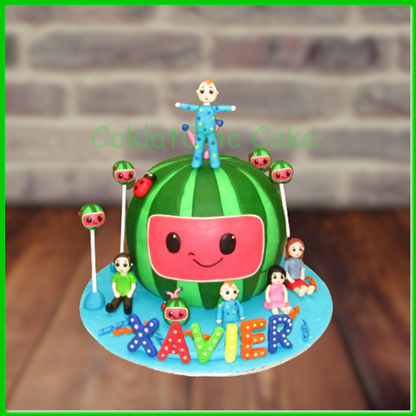 Birthday Cake dengan tema Cocomelon , model tersebut mulai ukuran 20 cm , daftar harga kue ulang tahun https://coklatchiccake.com/daftar-harga-2