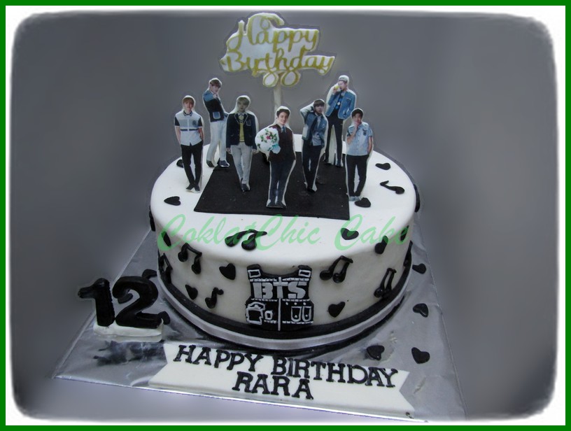 Birthday Cake dengan tema BTS , model tersebut mulai ukuran 24 cm , daftar harga kue ulang tahun https://coklatchiccake.com/daftar-harga-2