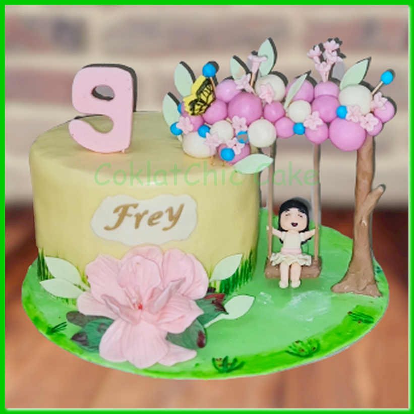 Birthday Cake dengan tema ayunan dan bunga model tersebut mulai ukuran 18 cm , daftar harga kue ulang tahun https://coklatchiccake.com/daftar-harga-2
