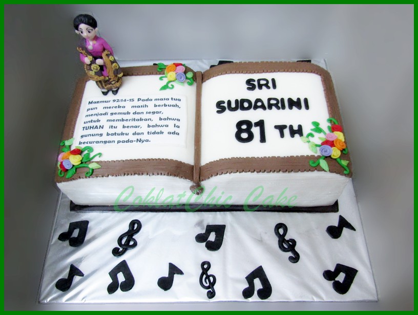 Birthday Cake dengan tema buku dan ibu pakai kebaya, model tersebut mulai ukuran 18×36 cm , daftar harga kue ulang tahun https://coklatchiccake.com/daftar-harga-2