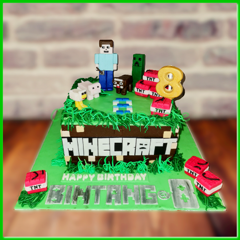 Birthday Cake dengan tema Minecraft , model tersebut mulai ukuran 15 cm , daftar harga kue ulang tahun https://coklatchiccake.com/daftar-harga-2